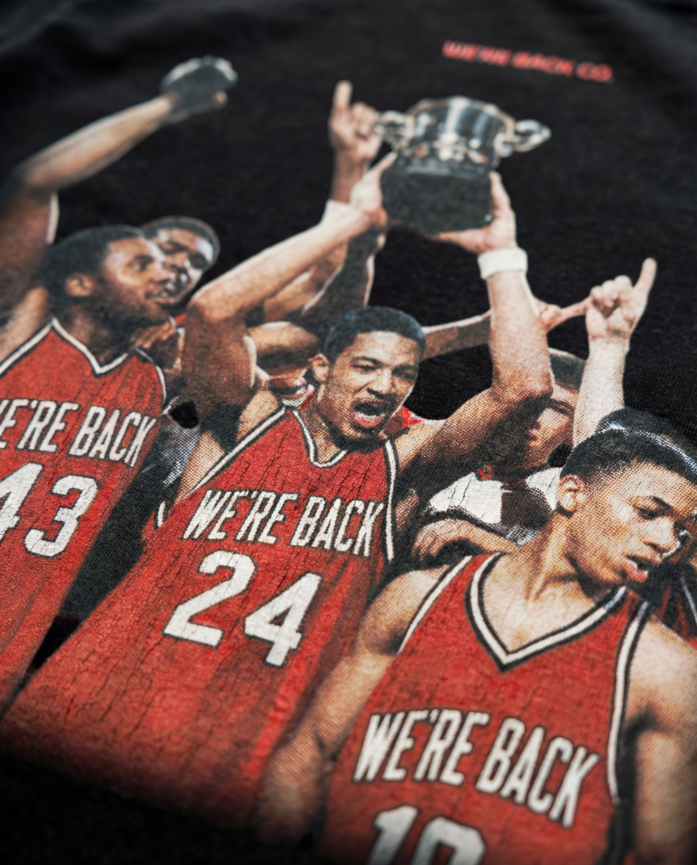 We flipped that energy into a vintage-style graphic that feels like something you’d find in a perfectly faded box under your uncle’s basement stairs. Championship posture. Arms up. Trophy high. Proof that dominance isn’t a myth it's just a memory that comes in cycles.